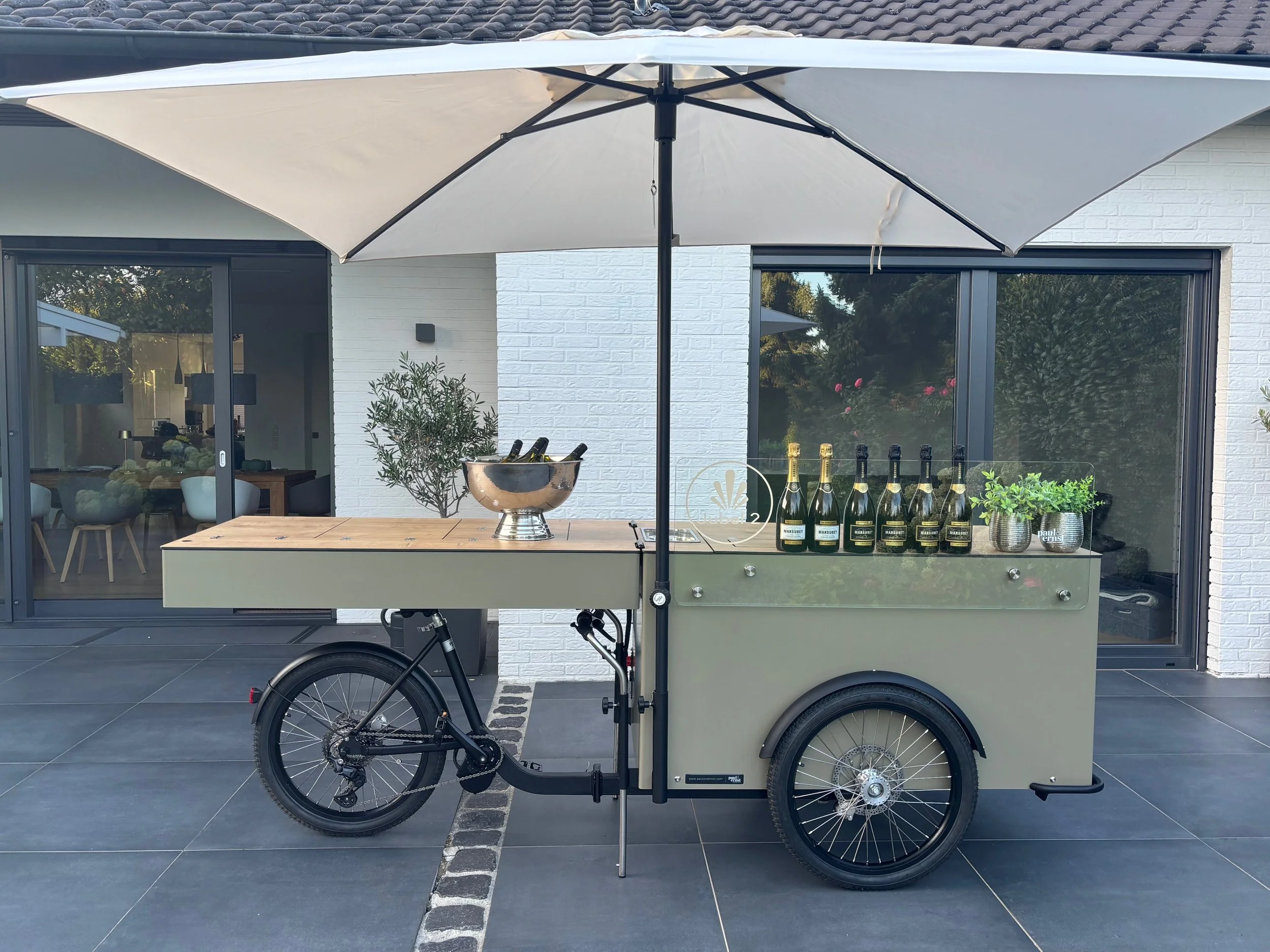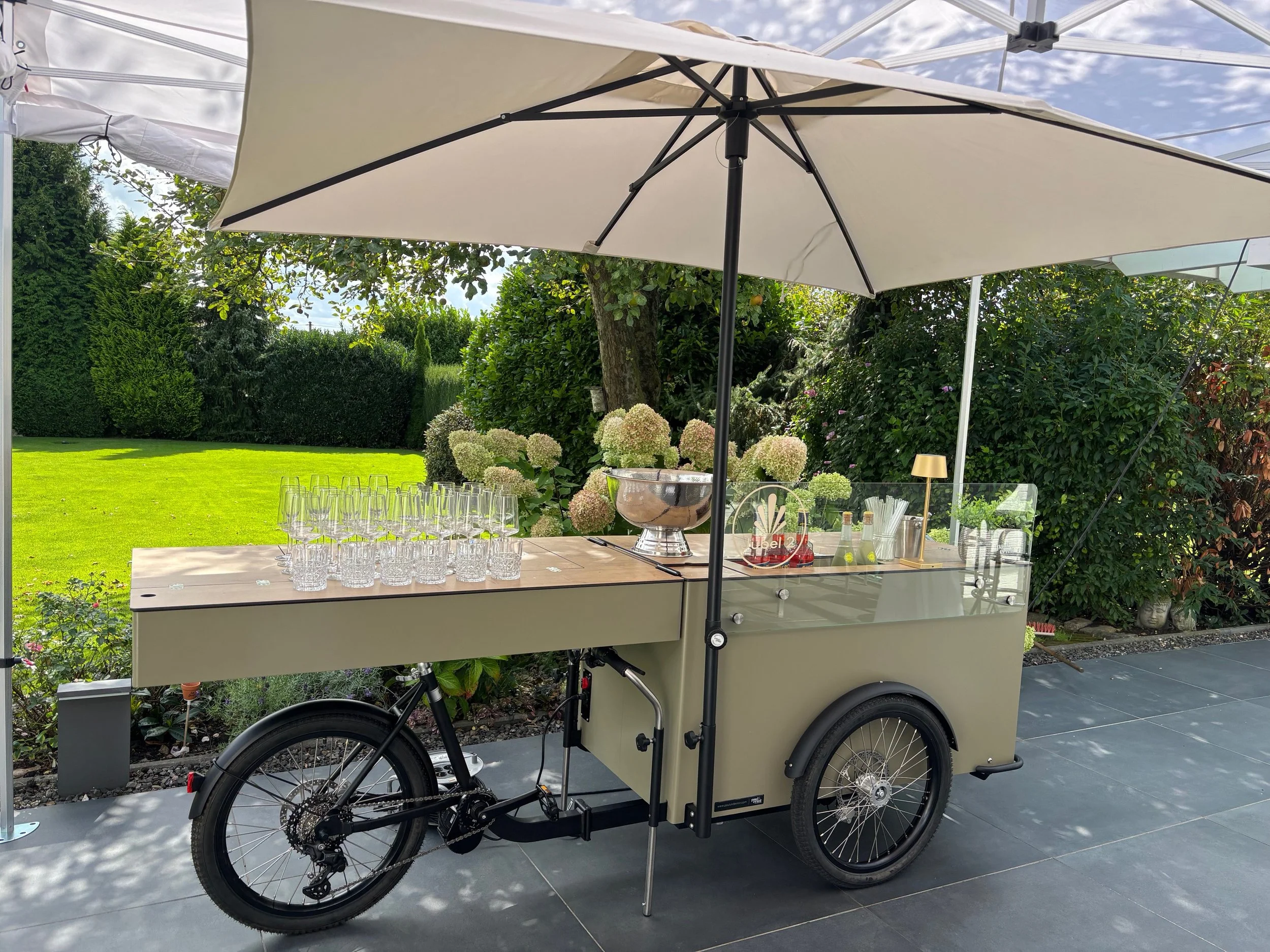 Wir kommen mit unserem E-Bike direkt zu Euch und bringen die gekühlten Getränke gleich mit.